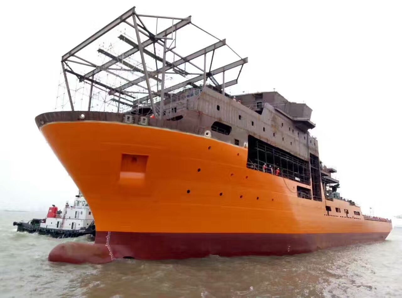 由南通豪通船務(上海事業(yè)部)在上海振華重工(長興基地)承接搭載工程的潛水飽和支持船,2017618成功下水!