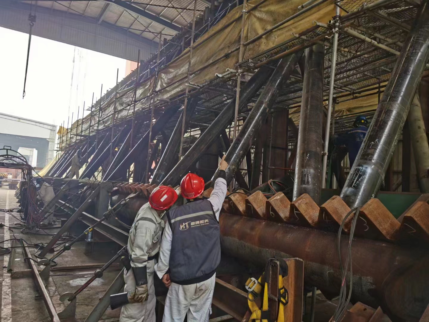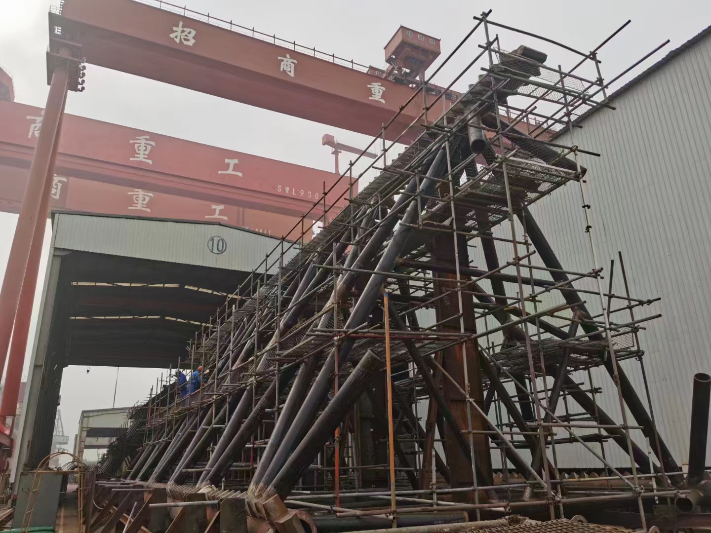 2023年4月30日,隨著招商重工273項目最后一節(jié)樁腿的成功摘鉤,標(biāo)志著豪通船務(wù)承接的招商重工“1200噸風(fēng)電安裝船”樁腿工程完美收關(guān)。自22年8月1日開始,豪通船務(wù)調(diào)集最優(yōu)秀的班組從齒條加工,單樁腿制作,樁腿合攏及最后的插樁對接,每一個環(huán)節(jié)都嚴絲合縫,無縫對接,所有作業(yè)人員爭分奪秒,夜以繼日,力爭在最短時間內(nèi)保質(zhì)保量完成項目并交付。